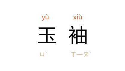 引唐 杜甫 《数陪李梓州泛江有女乐在诸舫戏为艳曲二首赠李》之一:“玉袖凌风竝,金壶隐浪偏。”仇兆鳌 注:“梁简文帝 诗:‘风吹玉袖香。’ 何逊 诗:‘惊絃雪袖迟。’玉、雪皆言袖色之白耳,若以玉饰袖,岂能凌风乎?”明 区大相 《家人初至京置酒亭中对雪作》诗:“玉袖承花出,珠帘卷絮迴。”