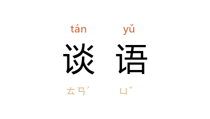 引《管子·轻重丁》:“途旁之树未沐之时,五衢之民男女相好,往来之市者罢市,相睹树下,谈语终日不归。”《史记·滑稽列传》:“即为 孙叔敖 衣冠,抵掌谈语。”《资治通鉴·汉武帝建元元年》:“上以 安 属为诸父而材高,甚尊重之,每宴见谈语,昏暮然后罢。”