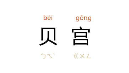 引宋 黄庭坚 《以团茶洮州绿石研赠无咎文潜》诗:“贝宫胎寒弄明月,天网下罩一日收。”元 吴莱 《风雨渡扬子江》诗:“黑云鲸涨颇心掉,明月贝宫终色侮。”清 王夫之 《游仙诗》之一:“银闕皑精光,贝宫烂霞采。”