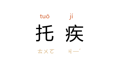引唐 封演 《封氏闻见记·诚节》:“知 安禄山 有异,谋出路,托疾诈死,家人载以归。”明 沉德符 《野获编·台省·台省之玷》:“乃言 让 以所生母为出继父之妾, 让 惭,托疾去。”《三国演义》第六回:“汝言正合吾意,明日便当托疾辞归。”