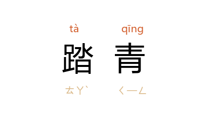 英语lit. tread the green; go for a walk in the spring (when the grass has turned green), spring hike season around Qingming festival 清明, 4th-6th April