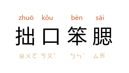 引清 宣鼎 《夜雨秋灯录·南郭秀才》:“咬文嚼字,秀才当行;拙口笨腮,农人本色。”章振荣 《借驴》:“俺这拙口笨腮说不过你。”