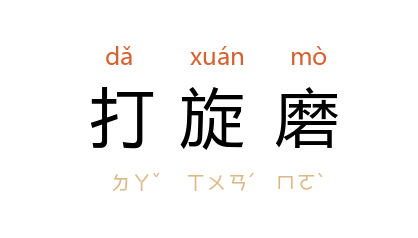 ⒉ 围绕着某物转。引申指周旋献殷勤;磨烦。