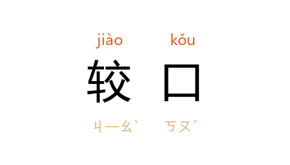 《红楼梦》第七三回:“可巧 宝釵、宝琴、黛玉、探春 等,因恐 迎春 今日不自在,都约来安慰他。走至院中,听得两三个人较口。”