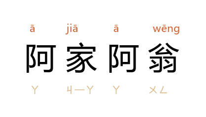 ⒈ 阿:名词的前缀。家:通“姑”,丈夫的母亲。翁:丈夫的父亲。指公公婆婆。