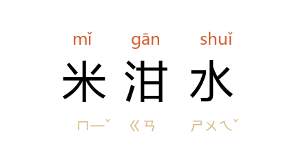 引《里语征实·卷中下·米泔水》:「《说文》曰:『周谓潘曰泔。』今人通谓米泔水。」