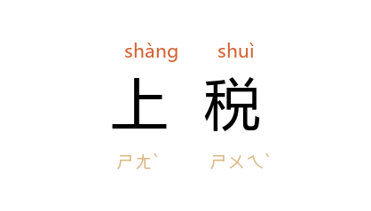 引老舍 《四世同堂》三八:“他须开着铺子,似乎专为上税与定阅官办的报纸。”柯岩 《追赶太阳的人》四:“不知道谁一高兴说出‘过年我杀了一口猪’, 吴丙治 马上就得走过去说:‘上税,两块五。’多败兴!”