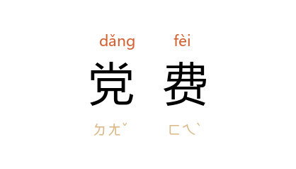 ⒈ 党员依照党的章程,向党组织交纳的费用。