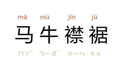 ⒈ 襟裾,人穿的衣服。马牛襟裾比喻人行事像禽兽一般。唐·韩愈〈符读书城南〉诗:「人不通古今,马牛而襟裾,行身陷不义,况望多名誉?」元·高文秀也作「牛马襟裾」。
