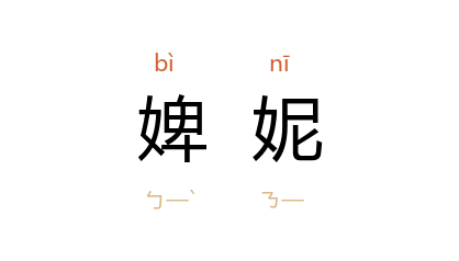 引宋·孟元老《东京梦华录·卷三·都市钱陌》:「金银七十四,珠珍、雇婢妮、买虫蚁六十八,文字五十六陌,行市各有长短使用。」宋·吴自牧《梦粱录·卷一九·顾觅人力》:「府宅官员、豪富人家,欲买宠妾、歌童、舞女、厨娘、针线供过、粗细婢妮。」