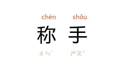 引宋 欧阳修 《与梅圣俞书》:“早来得笔絶佳……然久无称手者,乍得,甚快意。”《西游记》第二九回:“我这里有的是鞭、简、瓜、锤、刀、枪、鉞、斧、剑、戟、矛、镰,随你选称手的拿一件去。”陈登科 《赤龙与丹凤》第一部一:“有称手的家伙,给我找一件,跟你们一道干。”