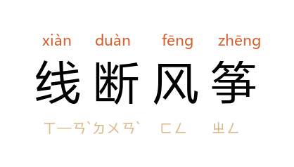 ⒉ 断了线的风筝。喻失去联系,无从寻觅。