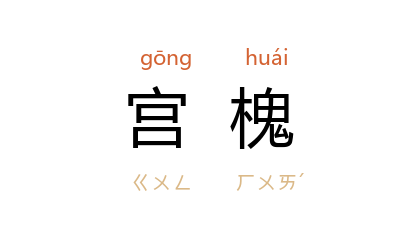 引南朝 梁元帝 《漏刻铭》:“宫槐晚合,月桂宵暉。”唐 王维 《宫槐陌》诗:“仄径荫宫槐,幽阴多緑苔。应门但迎扫,畏有山僧来。”宋 黄庭坚 《次韵王荆公题西太一宫壁》之二:“晚风池莲香度,晓日宫槐影西。”清 孔尚任 《桃花扇·会狱》:“宫槐古树閲沧田,掛寒烟,倚頽垣。”