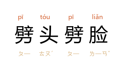 引元 石德玉 《秋胡戏妻》第二折:“把这廝劈头劈脸泼拳搥,向前来我可便挝挠了你这面皮。”《水浒传》第十四回:“夺过士兵手里棍棒,劈头劈脸便打。”《红楼梦》第八十回:“﹝ 薛蟠 ﹞找着 秋菱,不容分説,便劈头劈脸浑身打起来。”