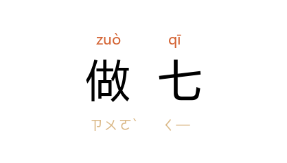 ⒈  依据道教说法,人死后魂魄仍生,嗣后每隔七天,会散离一魂,做七即每隔七天祭悼亡魂一次,藉道士之力而使亡者魂魄不散,并超度仙界。