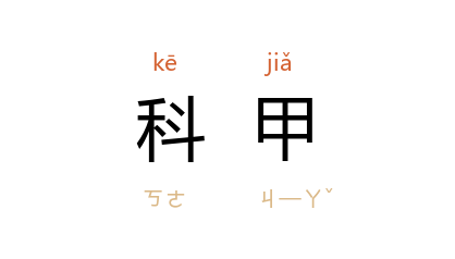 ⒈ 汉唐取士,有甲乙等科,后世因称科举为「科甲」。而明清时亦称进士、举人出身为「科甲」。