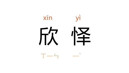 引元 刘光 《问田夫》诗:“老夫闻此言,欣懌当何如!”明 刘基 《<甘露颂>序》:“於是羣臣莫不欣懌,百姓莫不蹈舞,举手相庆。”清 姚鼐 《圣驾南巡赋》:“北户 而北,穷髮之南,靡弗欣懌。”