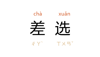 引《后汉书·徐防传》“故立博士十有四家” 李贤 注引 汉 应劭 《汉官仪》:“光武 中兴,恢弘稽古……凡十四博士。太常差选有聪明威重一人为祭酒,总领纲纪也。”《魏书·孝静帝纪》:“六月乙酉,以尚书左僕射 司马子如 为 山东 黜陟大使,寻为东北道大行臺,差选勇士。”