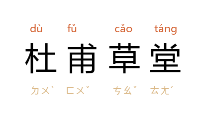 ⒈ 唐代大诗人杜甫晚年流居成都的故居,位于今四川省成都市西南部浣花溪畔,内有杜甫石刻像、工部祠、诗史堂等,1954 年建立杜甫草堂纪念馆。
