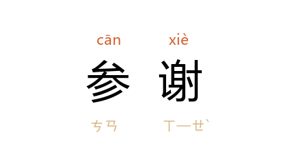 引《北齐书·赵郡王高叡传》:“﹝ 高叡 ﹞及还,不堪参谢,帝亲就第看问。”唐 李复言 《续幽怪录·李丘州》:“乃牓出……其日午时,随众参谢。”宋 陈鹄 《耆旧续闻》卷三:“盖是时,有旨差赴编修《明道参谢宗庙记》所,检讨校勘,故 宋公 奏议如此。”