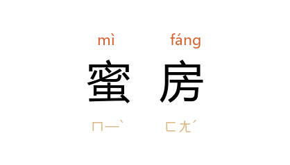 引汉 班固 《终南山赋》:“碧玉挺其阿,蜜房溜其巔。”唐 杜甫 《秋野》诗之三:“风落收松子,天寒割蜜房。”宋 黄庭坚 《次韵答叔原会寂照房呈稚川》:“客愁非一种,歷乱如蜜房。”