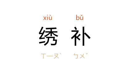 ⒈ 明清时文武百官的公服上绣鸟兽等图案,以别品级的高下,称为「绣补」。见《大清会典事例·卷三二六·礼部·冠服例》。