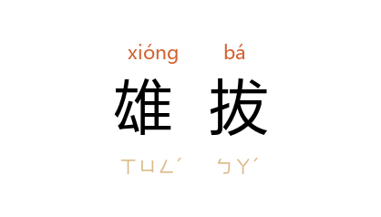 引宋 苏轼 《书金山寺壁》诗:“诗翁气雄拔,禪老语清软。”宋 朱弁 《曲洧旧闻》卷五:“然而气韵雄拔,疎通秀朗,当推 文潜。”清 叶名沣 《桥西杂记·塞上六歌》:“﹝ 徐兰 ﹞赋诗一卷, 渔洋山人 称其精悍雄拔,似供奉 嘉州。”