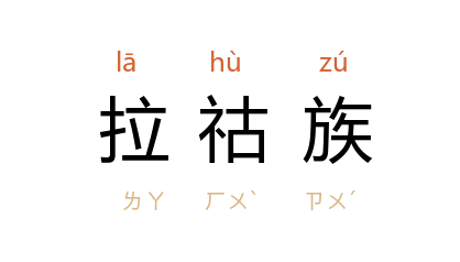 ⒈ 中国 少数民族之一。自称拉祜纳、拉祜西、拉祜普。人口30.4万。主要聚居在 云南 澜沧 和 孟连 两地,其余散居在 双江、耿马 等地。