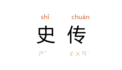 引《晋书·郑方传》:“博涉史传。”唐 韩愈 《顺宗实录三》:“歷代史传,无不贯通。”清 纪昀 《阅微草堂笔记·滦阳消夏录五》:“关帝 祠中,皆塑 周将军,其名则不见於史传。”阿英 《方志敏同志早年写的小说》:“研究他的史传和文学生活,都是很好的参考资料。”