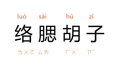 引鲁迅 《花边文学·看书琐记》:“巴尔札克 的小胡须的清瘦老人,到了 高尔基 的头里,也许变了粗蛮壮大的络腮胡子。”杜鹏程 《保卫延安》第四章:“他浑身充沛着力量,眼睛光芒四射,络腮胡子半个月没有剃又长得黑茬茬的了。”