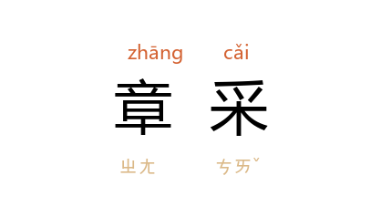 引《后汉书·舆服志下》:“衣裳玉佩,备章采。”明 李东阳 《陆仪庄甫字说》:“被之裳衣韍韐,以为之章采。”章炳麟 《与人论文书》:“李斯 云:‘随俗雅化。’夫以俗为縵白,雅乃继起,以施章采,故文质不相畔。”