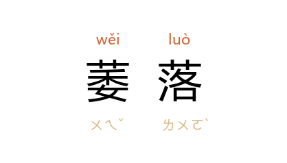 引《晋书·五行志上》:“元帝 太兴 四年, 王敦 在 武昌,铃下仪仗生华如莲华,五六日而萎落。”鲁迅 《坟·寡妇主义》:“在女子,是从有了丈夫,有了情人,有了儿女,而后真的爱情才觉醒的;否则,便潜藏着,或者竟会萎落,甚且至于变态。”
