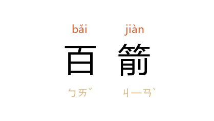 引《北齐书·神武帝纪下》:“追骑至,亲信都督 尉兴庆 曰:‘王去矣, 兴庆 腰边百箭,足杀百人。’”宋 欧阳修 《读书》诗:“自从中年来,人事攻百箭。”宋 孙觌 《兰溪津亭病起》诗:“风波涌地千沤发,创痏钻皮百箭攻。”