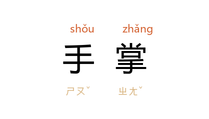 ⒈ 腕关节与指之间的部分。亦指手心的一面。