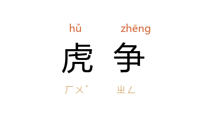 引《史记·南越列传》:“项羽、刘季、陈胜、吴广 等州郡各共兴军聚众,虎争天下,中国扰乱,未知所安。”《三国志·吴志·吴主传》“大将军 诸葛瑾 取 柤中” 裴松之 注引 晋 习凿齿 《汉晋春秋》:“零陵 太守 殷礼 言於 权 曰:‘今天弃 曹 氏,丧诛累见,虎争之际而幼童蒞事。’”唐 李白 《留别于十一兄逖裴十三游塞垣》诗:“秦 赵 虎争血中原,当去抱关救公子。”