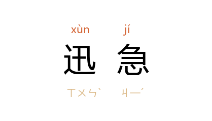 引晋 王嘉 《拾遗记·后汉》:“河 流迅急。”宋 苏轼 《次韵吕梁仲屯田》:“门外 吕梁 从迅急,胸中 云梦 自逶迟。”巴波 《康藏高原上的驾驶员--路超》:“这个魁伟身材的中年人,出人意料地扑向那辆无人驾驶的车子,迅急地跳上了驾驶台。”