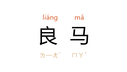 引《诗·鄘风·干旄》:“素丝紕之,良马四之。”《墨子·亲士》:“良马难乘,然可以任重致远。”三国 魏 曹丕 《善哉行》之一:“策我良马,被我轻裘,载驰载驱,聊以忘忧。”