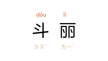 引唐 韩愈 《送僧澄观》诗:“构楼架阁切星汉,夸雄鬭丽止者谁?”唐 李渤 《南溪》诗序:“溪左屏外巖巘,鬭丽争高。”清 方履籛 《网山赋》:“贸其餘勇,勒其参伍,以角力而斗丽。”