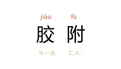 ⒈ 像胶一般黏合在一起。比喻十分密切。