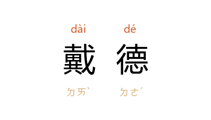 ⒈ 人名。(西元前48~33)字延君,生卒年不详,汉梁人。为西汉经学家,与其姪圣同受礼于后苍,戴德称大戴,戴圣称小戴。德删辑八十五篇,名《大戴礼》;圣又删为四十九篇,名《小戴礼》,即今之《礼记》。