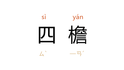 引唐 白居易 《题西亭》诗:“四檐轩鸟翅,复屋罗蜘蛛。”宋 范成大 《白玉楼步虚词》序:“垂璫四簷,黄帘皆捲,楼中帝座,依约可望。”