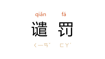 引晋 傅玄 《鼙舞歌·明君》:“明君御四海,听鉴尽物情。顾望有谴罚,竭忠身必荣。”《资治通鉴·唐太宗贞观十一年》:“魏徵 上疏,以为:‘陛下欲善之志不及於昔时,闻过必改少亏於曩日。谴罚积多,威怒微厉。’”清 刘大櫆 《程氏宗祠碑记》:“其不遵约束者,众共谴罚之。”