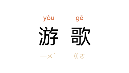 引语出《诗·大雅·卷阿》:“岂弟君子,来游来歌,以矢其音。”陈奂 传疏:“游,优游也;歌,歌舞也。”《云笈七籤》卷二二:“皆天王之游歌,空玄之宝章。”清 恽敬 《<坚白斋诗集>序》:“使彼数诗人者,为游歌之作,燕喜之章,何尝不鏘然如韶钧,蔚然如虎凤哉!”
