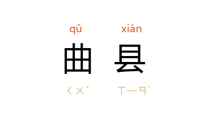 ⒉ 周礼,诸侯之乐,室内三面悬乐器,形曲,谓之“曲县”。县,“悬”的古字。