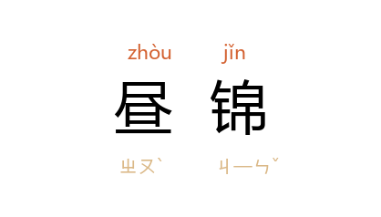 《史记·项羽本纪》作“衣绣夜行”。后遂称富贵还乡为“衣锦昼行”,省作“昼锦”。 《北史·毛鸿宾传》:“明帝 以 鸿宾 兄弟所定处多,乃改 北地郡 为 北雍州,鸿宾 为刺史。詔曰:‘此以昼锦荣卿也。’”