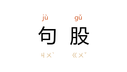 ⒈ 数学名词。古称直角三角形夹直角的两条边,短边为句。长边为股。又称立竿测太阳高度时的标竿为股,日影为句。