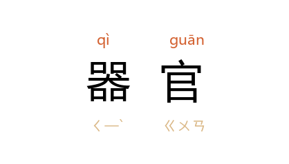 ⒈ 生物内由多种组织组合而成,具特定功能、形态的功能单位。如胃、肠是消化器官,输尿管、膀胱是排泄器官。