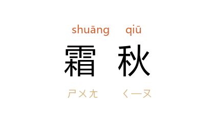 引唐 卢仝 《感秋别怨》诗:“霜秋自断魂, 楚 调怨离分。”宋 欧阳修 《渔家傲》词:“九月霜秋秋已尽,烘林败叶红相映,惟有东篱黄菊盛。”宋 苏轼 《送文与可出守陵州》诗:“而况我友似君者,素节凛凛欺霜秋。”