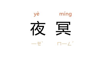 引汉 郭宪 《洞冥记》卷三:“有明茎草,夜如金灯,折枝为炬,照见鬼物之形。仙人 寧封,常服此草。於夜暝时转见腹光通外,亦名洞冥草。”晋 张华 《博物志》卷三:“或夜冥,人不见鸟,鸟亦知人不见己也。”