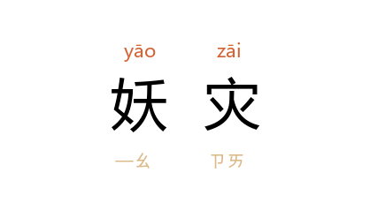 引《左传·宣公十五年》:“天反时为灾,地反物为妖,民反德为乱,乱则妖灾生。”晋 范宁 《<春秋穀梁传集解>序》:“是以妖灾因衅而作。”